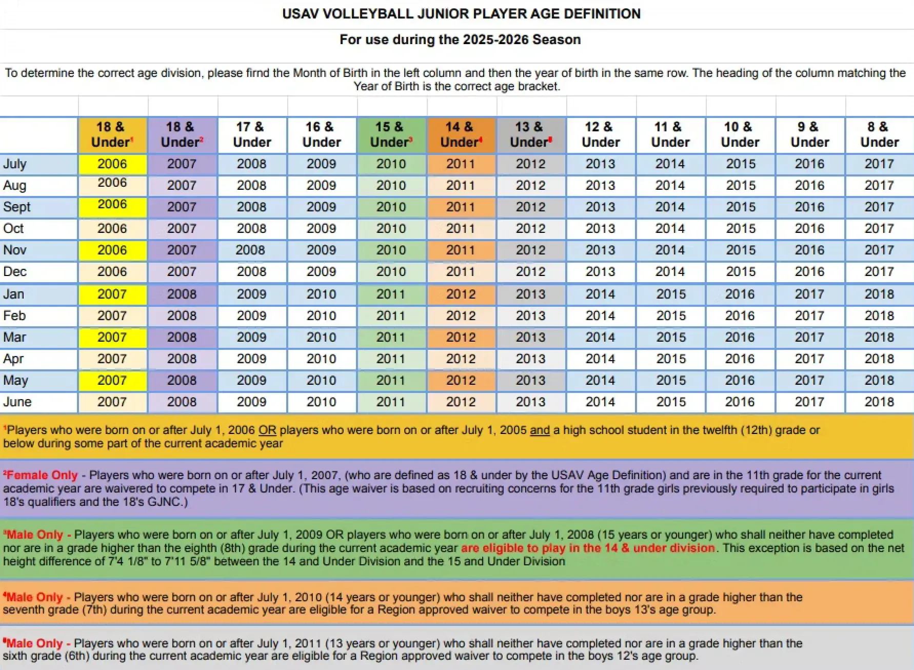 11U-14U Evaluation Camps, Pre-Tryout Open Gyms, and Tryouts will be held in October.